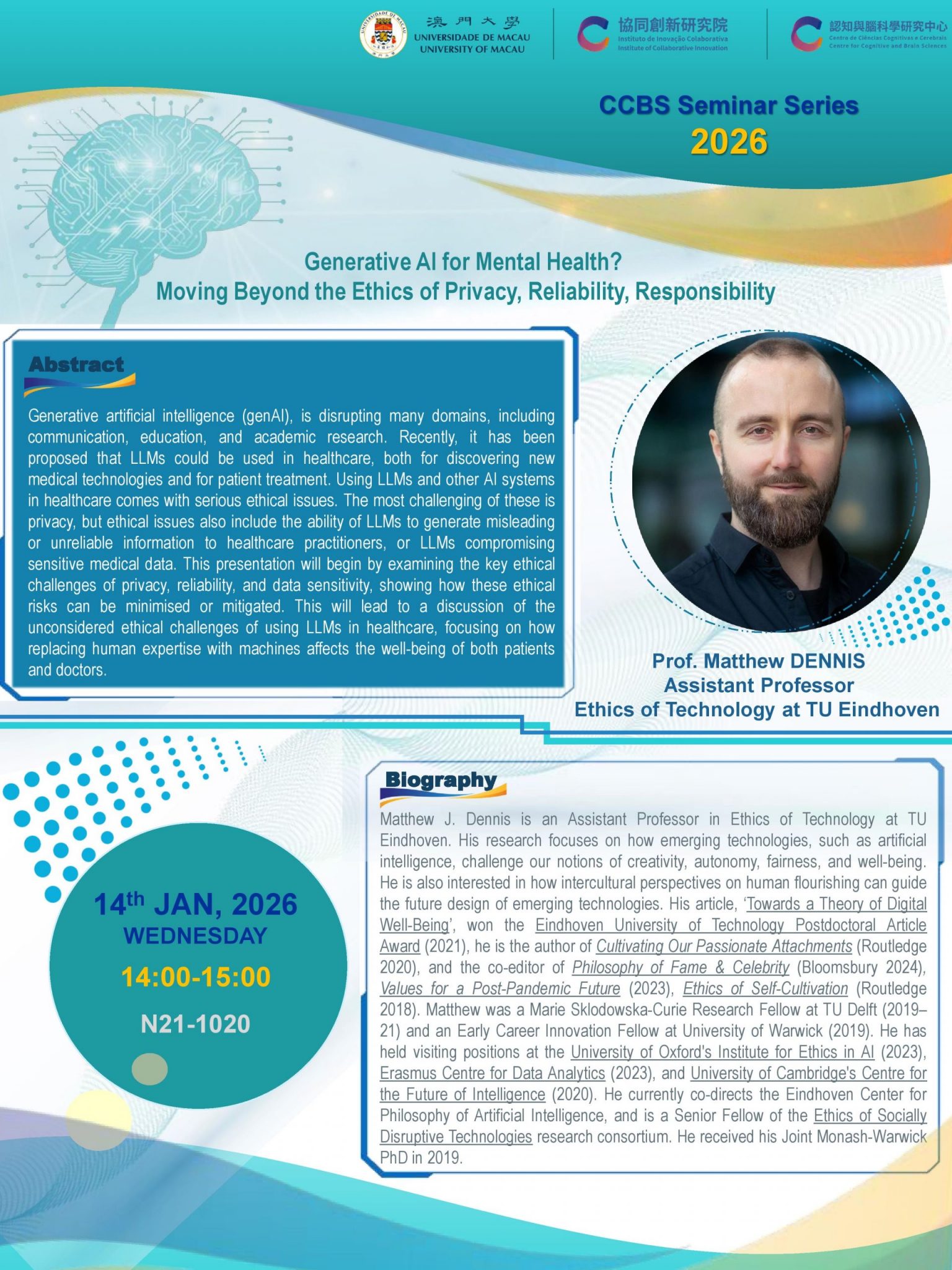 CCBS Seminar Series 2026: Talk 1 by Prof. Matthew DENNIS, Ethics of Technology at TU Eindhoven Gallery CCBS Seminar Series 2026: Talk 1 by Prof. Matthew DENNIS, Ethics of Technology at TU Eindhoven Activity_notice CCBS Seminar Series 2026: Talk 1 by Prof. Matthew DENNIS, Ethics of Technology at TU Eindhovenliangxuanyu Yu Liangxuan2026-01-07T15:41:13+08:002026-01-07|